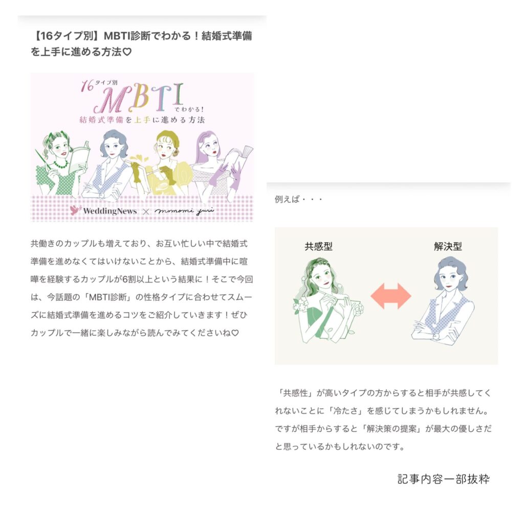 Wedding News 内のMBTI診断記事にて、